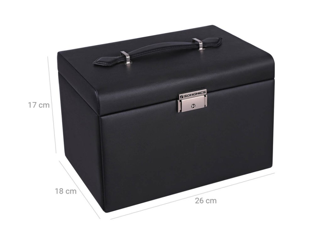 Stylová šperkovnice se 2 zásuvkami je ideálním řešením pro přehledné a bezpečné uložení šperků i doplňků. Elegantní černý design působí luxusně a hodí se do každé ložnice či šatny.