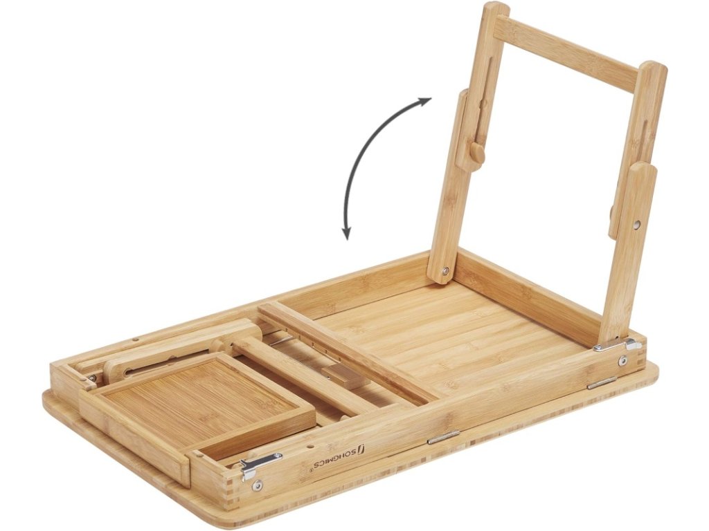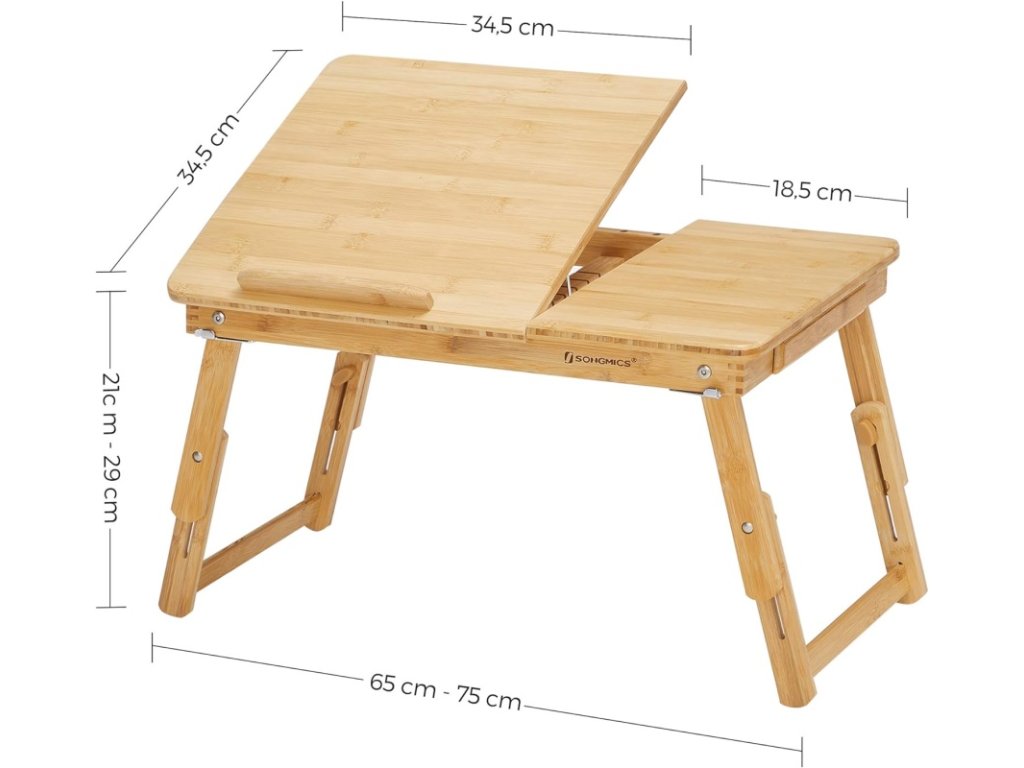 Hlavní pracovní deska je nastavitelná do několika poloh, což umožňuje ergonomické nastavení při psaní na notebooku nebo čtení knihy. Integrovaná lišta zabraňuje sklouznutí notebooku či knihy. Vedlejší pevná plocha poslouží na myš, hrnek nebo drobné občerstvení.