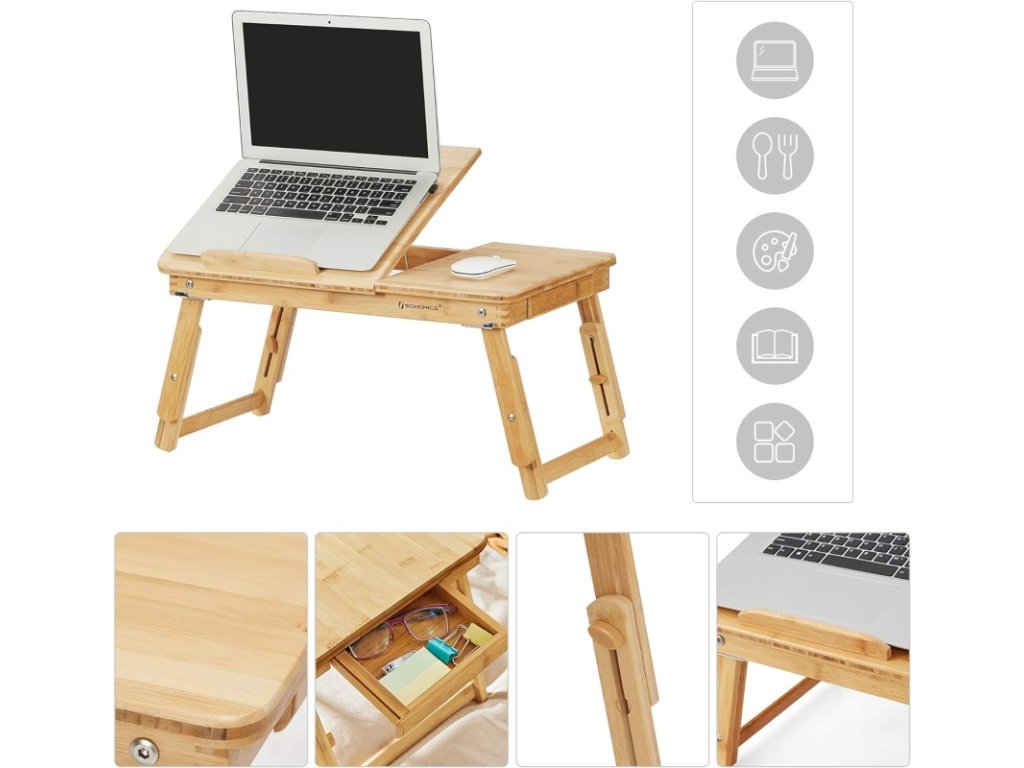 Multifunkční stolek pod notebook a podnos na snídani je ideálním řešením pro pohodlnou práci, studium i relax přímo v posteli nebo na gauči. Díky promyšlené konstrukci jej využijete jako notebookový stolek, snídaňový podnos, čtecí pult i pracovní stolek.