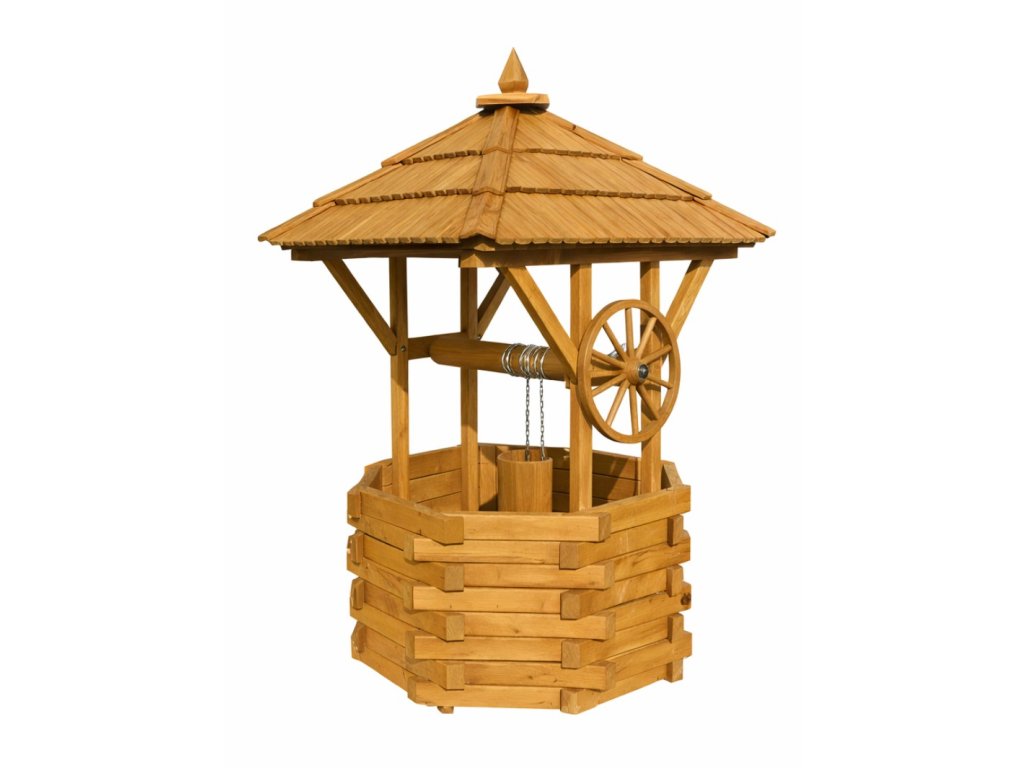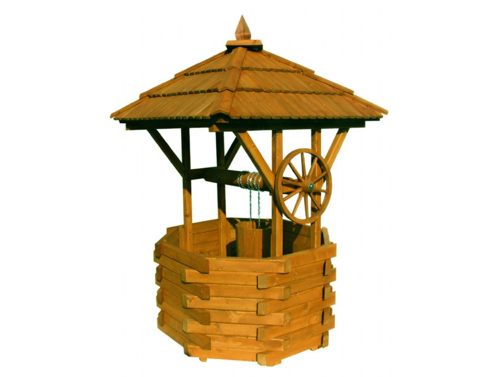 Dřevěná zahradní dekorační studna ST2 s průměrem 40 cm je krásná dekorace z masivního jehličnatého dřeva. Studna je ošetřena impregnací mořidlem a dodávána částečně smontovaná.