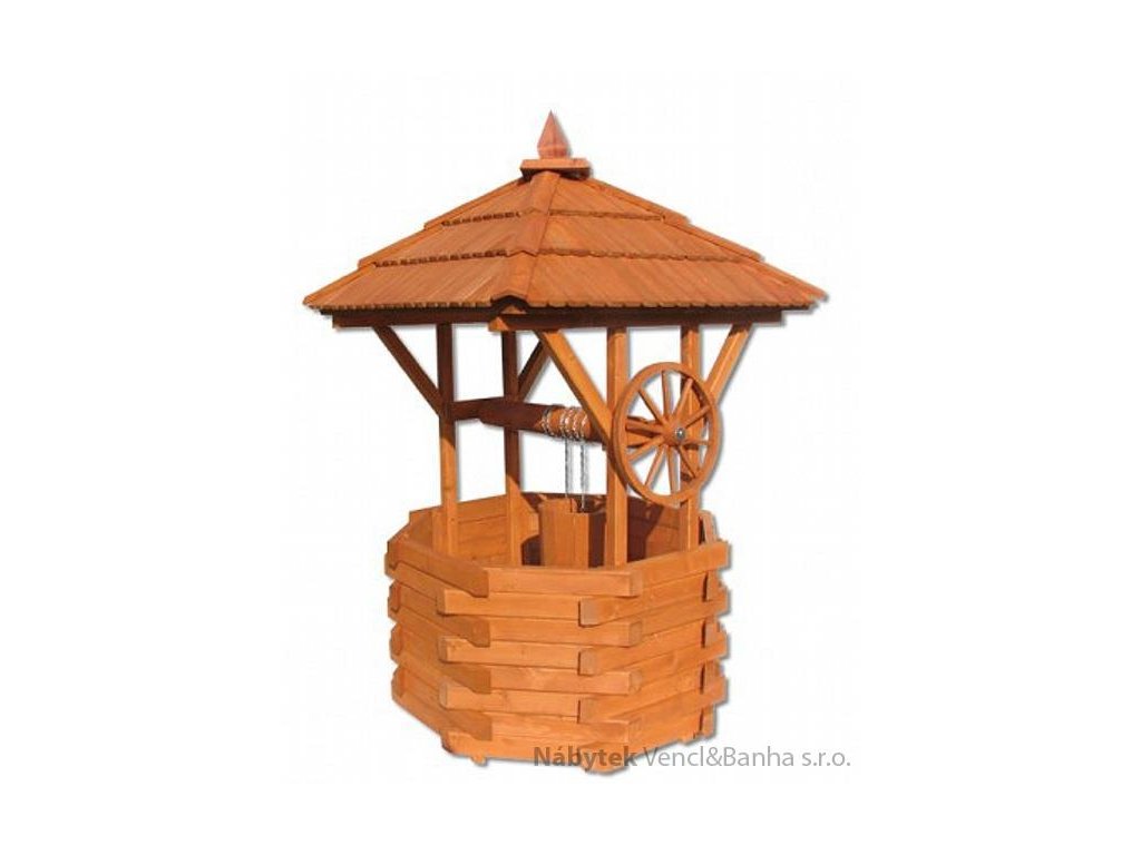 Malá dřevěná zahradní dekorační studna Drewfilip 61, průměr 47 cm, z masivního jehličnatého dřeva, impregnace mořidlem, snadná montáž, doprava po celé ČR.