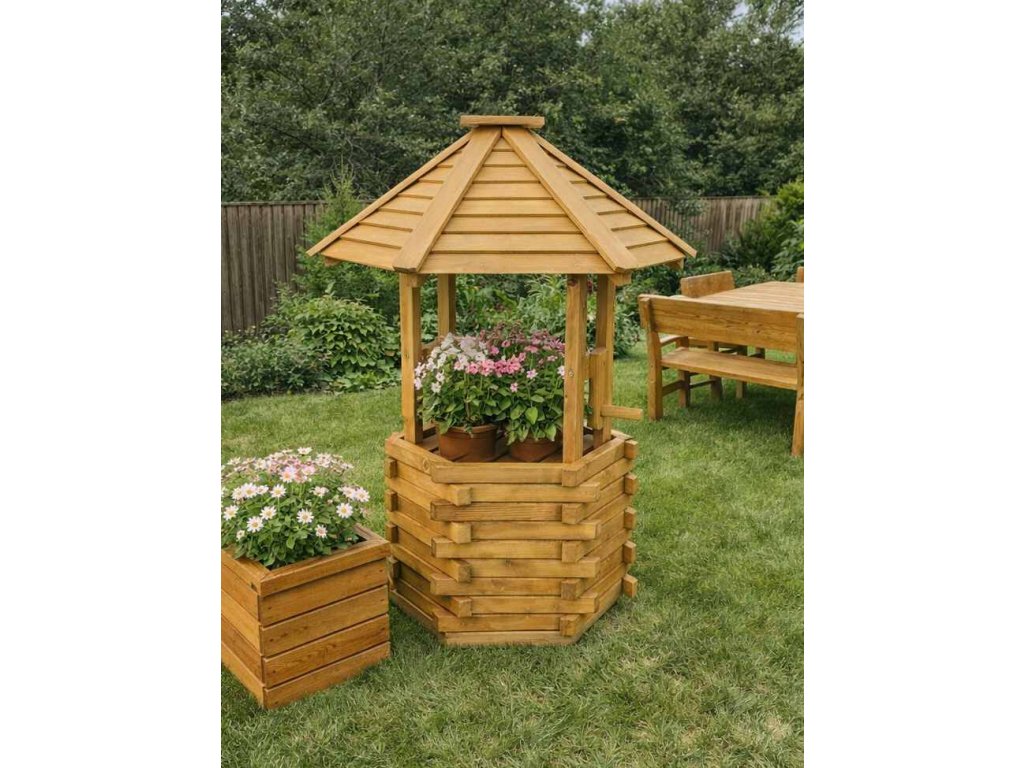 Zahradní dekorace – dřevěná studna WIKI 130 cm 130 cm | masivní dřevo | rustikální zahradní dekorace
