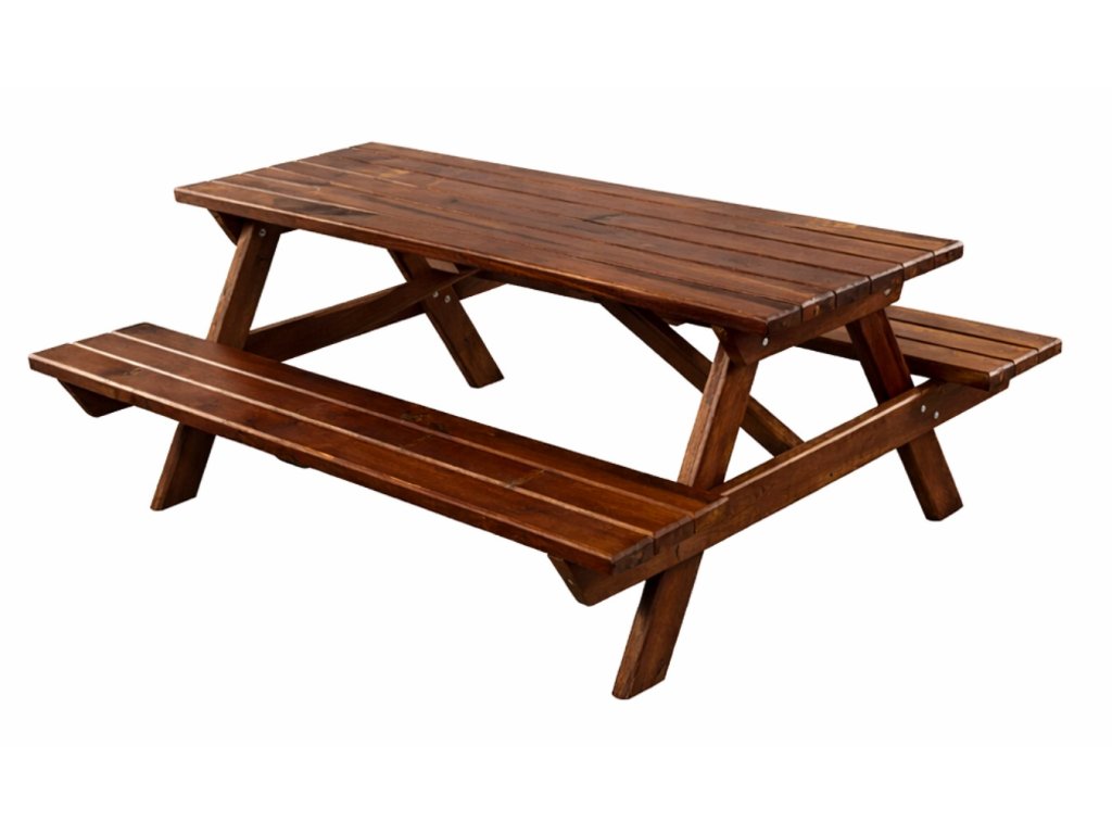 Praktický piknikový set LARA z masivního dřeva s integrovanými lavicemi. Stabilní, odolný a ideální pro rodinné posezení na zahradě. Pohodlný a praktický zahradní set MO110 je ideální volbou pro menší zahradu, pozemek nebo pivnici. Tato sada kombinuje jeden stůl se dvěma lavicemi, což poskytuje dostatek místa pro posezení a relaxaci. Nábytek je vyroben ze smrkového dřeva, které je známé svou odolností a pevností. Navíc máte možnost výběru odstínu dřeva, aby nábytek dokonale ladil s vaším venkovním prostorem.