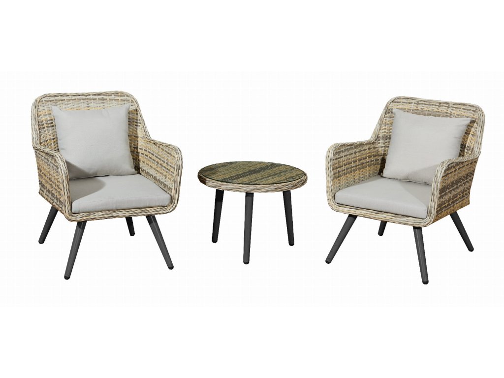 Kompaktní ratanová jídelní souprava CONCORD SMALL je ideální pro balkon, terasu i menší zahradu. Nabízí moderní design, odolný umělý ratan a pohodlné křesla s polstry pro...