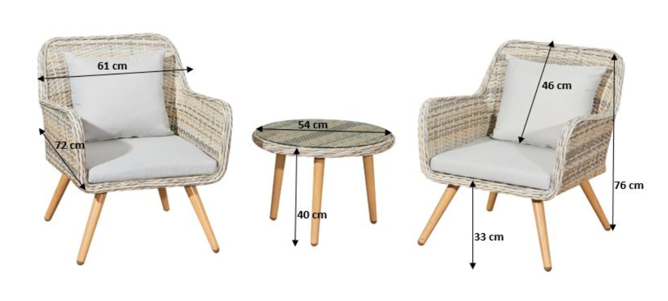 Praktická balkonová sestava se skleněným stolkem a dvěma pohodlnými židlemi. Ideální řešení pro balkon, terasu i menší zahradu – moderní design, snadná údržba a kompaktní rozměry.